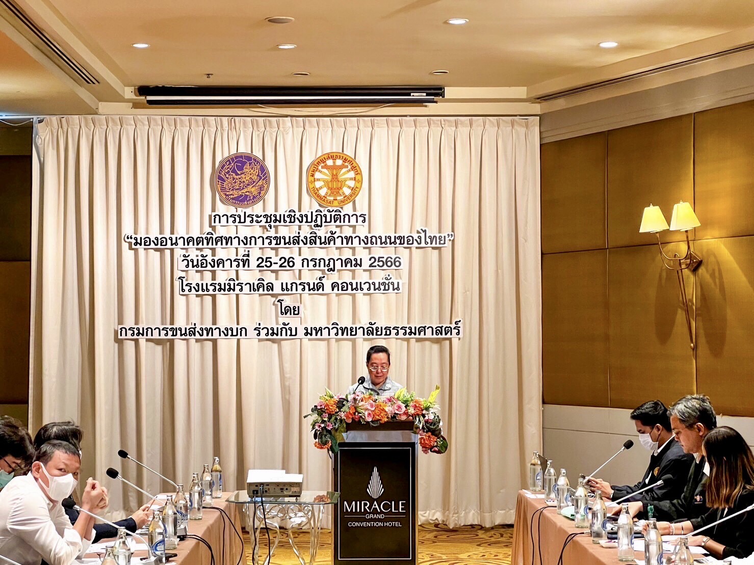 เมื่อวันที่ 25-26 กรกฎาคม 66 คุณสุรพล จันทร์ประภานนท์ รองประธานสหพันธ์การขนส่งทางบกแห่งประเทศไทย ดร.พงษ์พัฒน์ สัตยวินิจ รองประธานสหพันธ์ฯ คุณณัฐจันธร ขวัญเมือง รองเลขาธิการสหพันธ์ฯ พร้อมด้วย คณะกรรมการบริหารสหพันธ์ฯ และผู้แทนสมาคมขนส่งฯ ได้เข้าร่วมการประชุมเชิงปฏิบัติการ “มองอนาคตทิศทางการขนส่งสินค้าทางถนนของไทย” เพื่อแสดงความคิดเห็นเกี่ยวกับแนวโน้มและทิศทางการขนส่งสินค้าทางถนนของประเทศไทย โดยมุ่งเน้นที่การขนส่งสินค้าใน 4 มิติ ได้แก่ โครงสร้างพื้นฐานทางถนน, นวัตกรรมยานยนต์, ระบบการขนส่งอัจฉริยะ และนโยบายและกฎระเบียบ โดยมี ผู้อำนวยการสำนักการขนส่งสินค้า กรมการขนส่งทางบก เป็นประธานกล่าวเปิดการประชุม ณ ห้องมาร์ ชั้น 3 โรงแรมมิราเคิลแกรนด์ คอนเวนชั่นกรุงเทพมหานคร