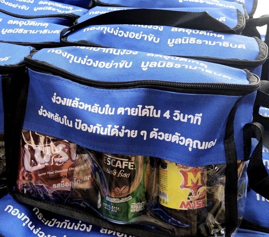 ดร.ต่อพงศ์ วัจนะสวัสดิ์ นายกสมาคมไทยอเมริกัน ได้จัดประชุมให้นพ. มนูญ ลีเชวงวงศ์ประธานทุนง่วงอย่าขับ มูลนิธิรามาธิบดีบรรยายทางวิชาการ “ป้องกันการหลับใน ภัยมืดที่มองไม่เห็น” และมอบกระเป๋ากันง่วง ในกระเป๋ามีหมากฝรั่ง กาแฟ เครื่องดื่มชูกำลัง ยาดม ให้พนักงานขับรถบรรทุกขนาดใหญ่ใช้เวลาง่วงเพื่อลดอุบัติเหตุจากง่วงหลับในจำนวน 30,000 กระเป๋า มีมูลค่ามากกว่า 1.5 ล้านบาท